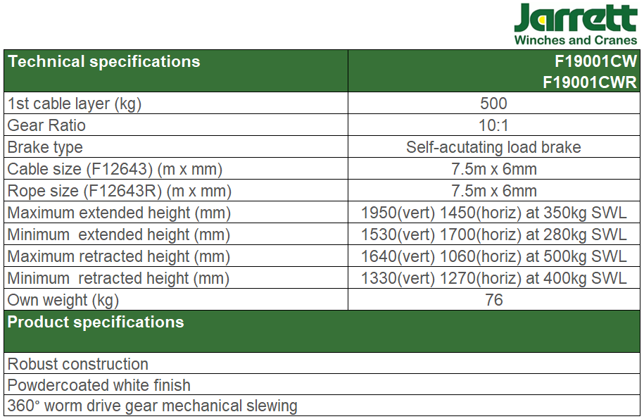 The Backsaver is fitted with a 360 Degree mechanical slewing by means of a worm drive gear. This eliminates the danger of the crane boom swinging out of control when the load is taken up. The boom can only be rotated (slewed) by operating the slewing control handle.