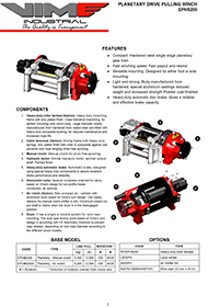 The VIME range of planetary recovery winches are available in sizes ranging from 3600 kg to 7200 kg pulling capacity available in either manual or air clutch free spooling options.
