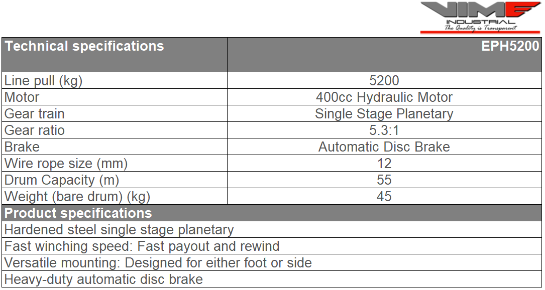 VIME EPH5200 Hydraulic Recovery Winch 5200Kg