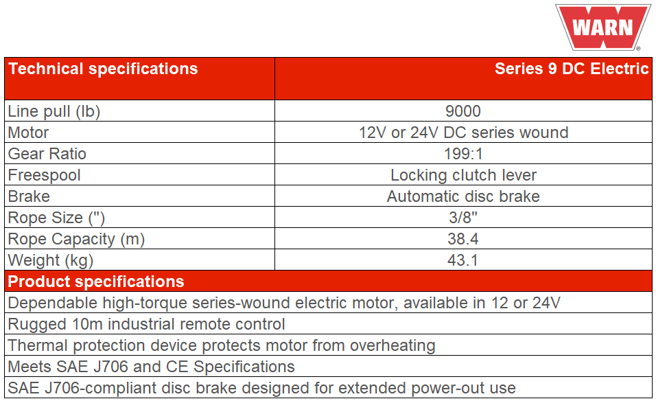Warn Series 9 12/24V DC Electric Recovery Winch 9000lb