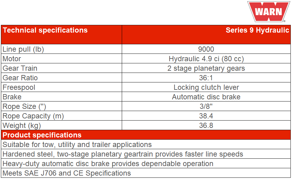 Warn Series 9 Hydraulic Recovery Winch 9000lb