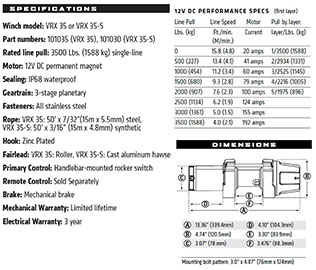 Warn VRX 35 12V DC ATV Recovery Winch 3500lb