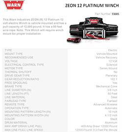 Warn Zeon 12 Platinum 12V DC Electric Recovery Winch incl Wireless Remote 12000lb