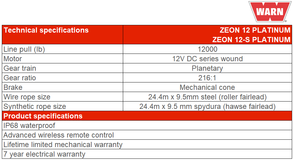 Warn Zeon 12 Platinum 12000lb Recovery Winch incl Remote