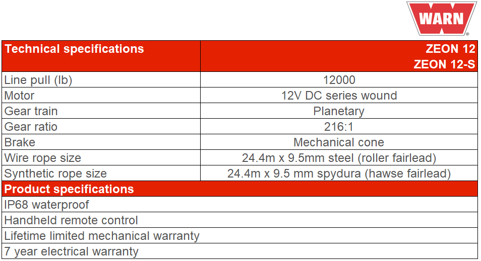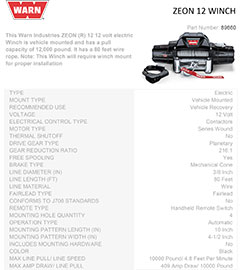 The Warn ZEON continues to redefine winching. ZEON is the premium winch line for trucks, Jeeps, and SUVs, and provides unmatched durability, performance, and style. These winches have become top sellers for a good reason: They’ve been the top choice of editors and off-roaders worldwide, and look as good as they perform.